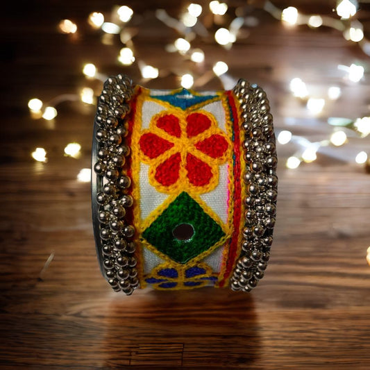 kada - PC 2 Multicolored Embroidered Woolen Mirror Work Kada